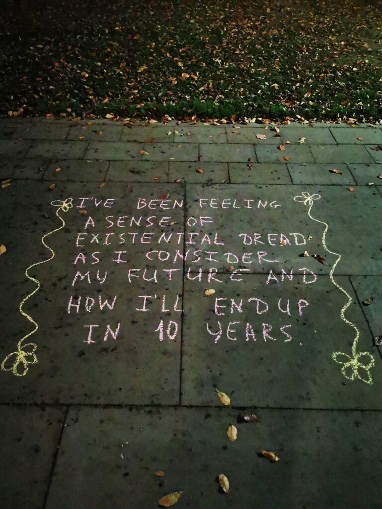 Ministry of Loneliness came to the streets of Philadelphia, Trenton and NYC to take your loneliness claims. The Minister worked hard and smoked a lot. Then very late at night, he’d share anonymous bits, from the claims he had received, in chalk writings on the cities’ pavements.